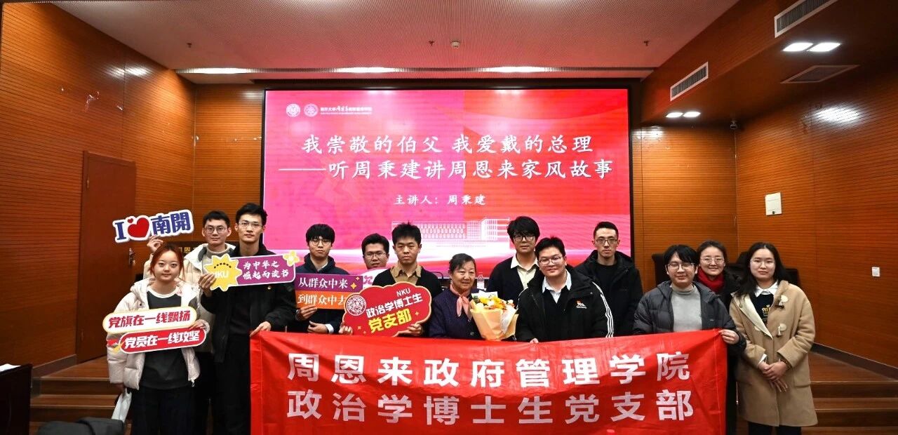 公司政治学博士生党支部成员代表全体员工向周秉建老师献上鲜花,表达真挚敬意。参与师生纷纷表示,周秉建老师的讲述让周恩来总理的崇高品格和伟大风范更加鲜活可感,其家风故事是宝贵的精神财富和生动的德育教材。日后一定会以总理为榜样,自觉传承恩来精神,坚定理想信念,勇担周政青年学子善政善治之责。