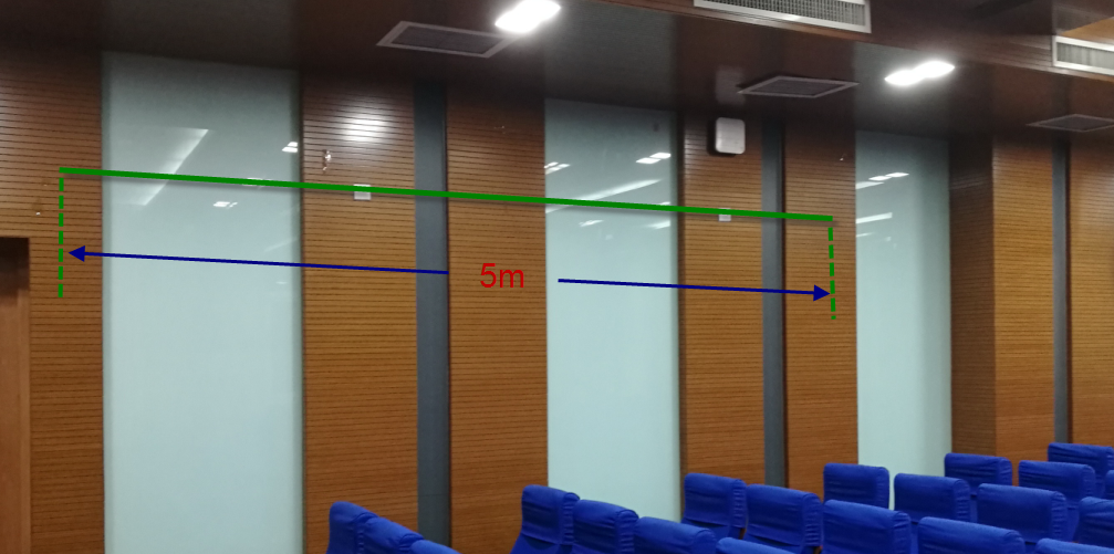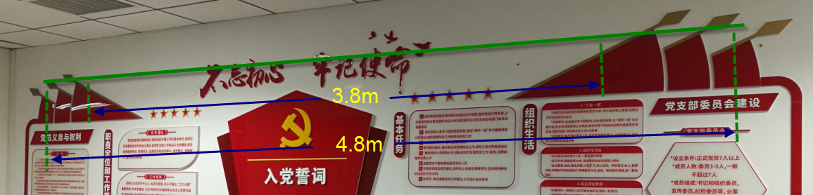 2. 左侧后半部,建议长度:5米,最长不超过5.5米。透明胶带粘贴,会议结束立即清除胶带。