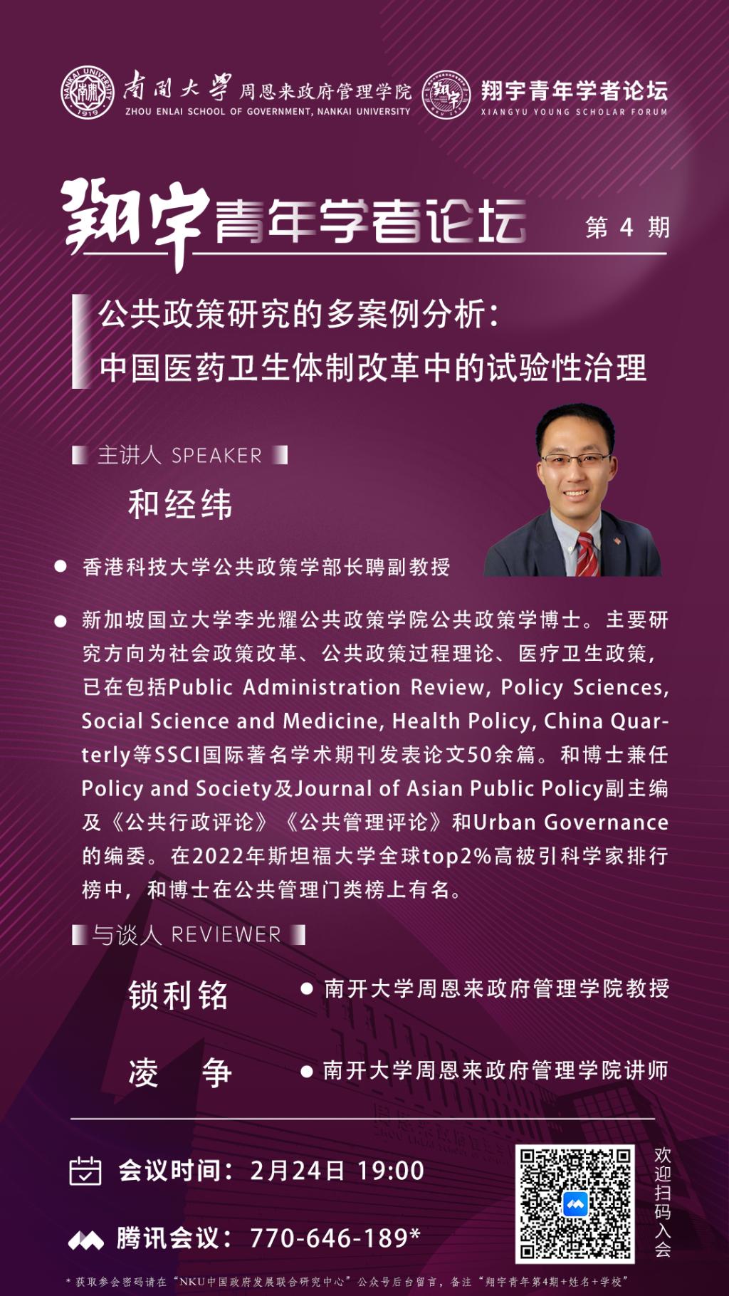 注:获取参会密码请在“NKU中国政府发展联合研究中心”公众号后台留言,备注“翔宇青年第4期+姓名+集团”。