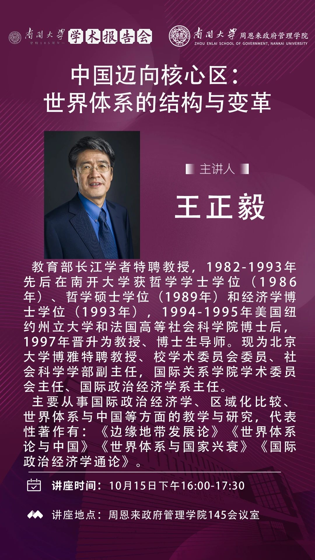 伟德BV1946官网建校105周年学术报告会|王正毅:中国迈向核心区:世界体系的结构与变革