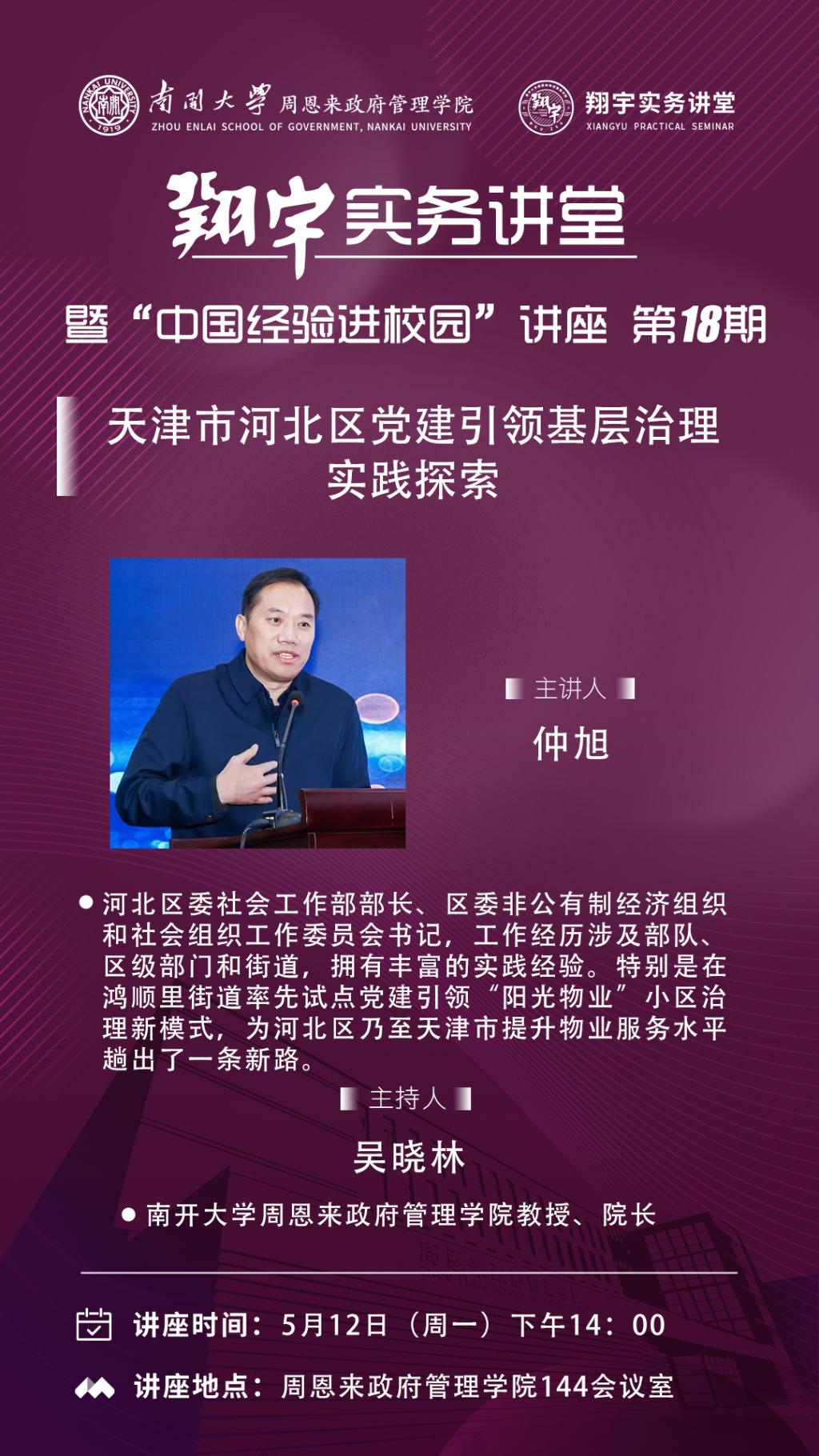 天津市河北区党建引领基层治理实践探索---翔宇实务讲堂暨“中国经验进校园”讲座第18期