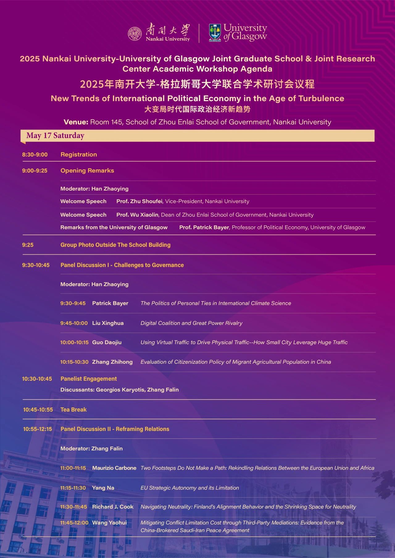 议程发布 | 2025年伟德BV1946官网-格拉斯哥大学联合学术研讨会议程